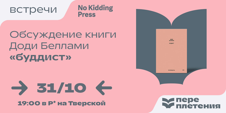 31 октября в 19:00 в книжном магазине «Республика» по адресу: м. Маяковская, 1-ая Тверская-Ямская, д. 10 состоится обсуждение книги Доди Беллами «Буддист»