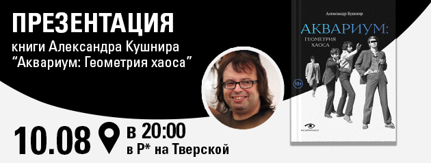 10 августа в 20.00 в магазине Республика (м. Маяковская, ул. 1-я Тверская-Ямская, 10) Александр Кушнир представит свою новую книгу «Аквариум: геометрия хаоса».